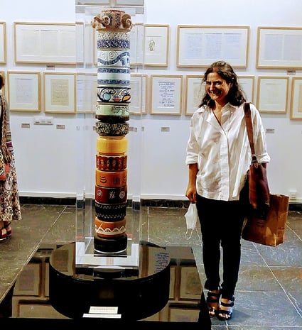 Esta escultura de PACO DÍAZ fue realizada ensamblando piezas diseñadas por el autor y realizadas en sus talleres por diversos alfareros y ceramistas, que aportaron a las piezas su estilo
