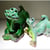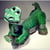 Las tonalidades verdes y amarillas del esmalte y los precisos detalles dan forma a este dino de jugetona postura.
