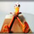 Dinosaurio jugando, pieza única modelada sobre arcilla roja y decorada con esmaltes cerámicos en un segundo horneado.