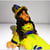 Pequeño polluelo, pieza única modelada sobre arcilla roja y decorada con esmaltes cerámicos en un segundo horneado.